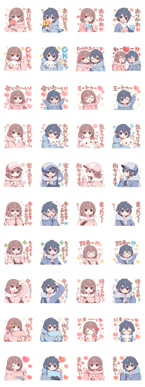 大好きな人、大切な人といっしょに使えるスタンプです。リアクションや伝えたい言葉が沢山入っています。友達や恋人、家族との会話、に是非♪ 待ち合わせスタンプ