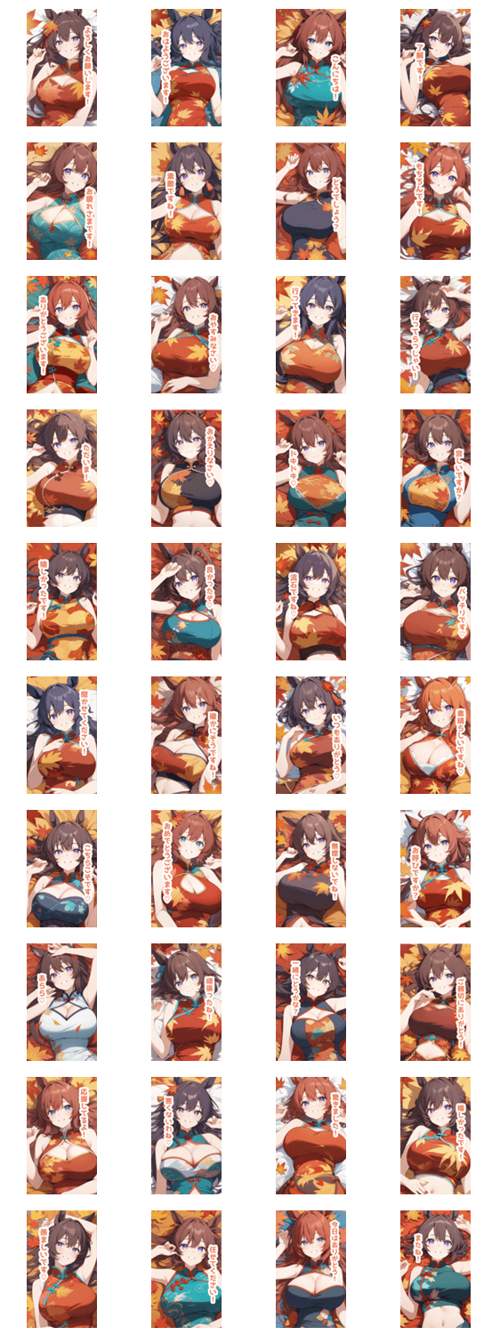 紅葉柄チャイナドレス馬女子BIGスタンプ -LINEスタンプマニア