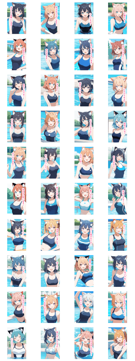 プールで遊ぶ水着の猫の女の子BIGスタンプ -LINEスタンプマニア