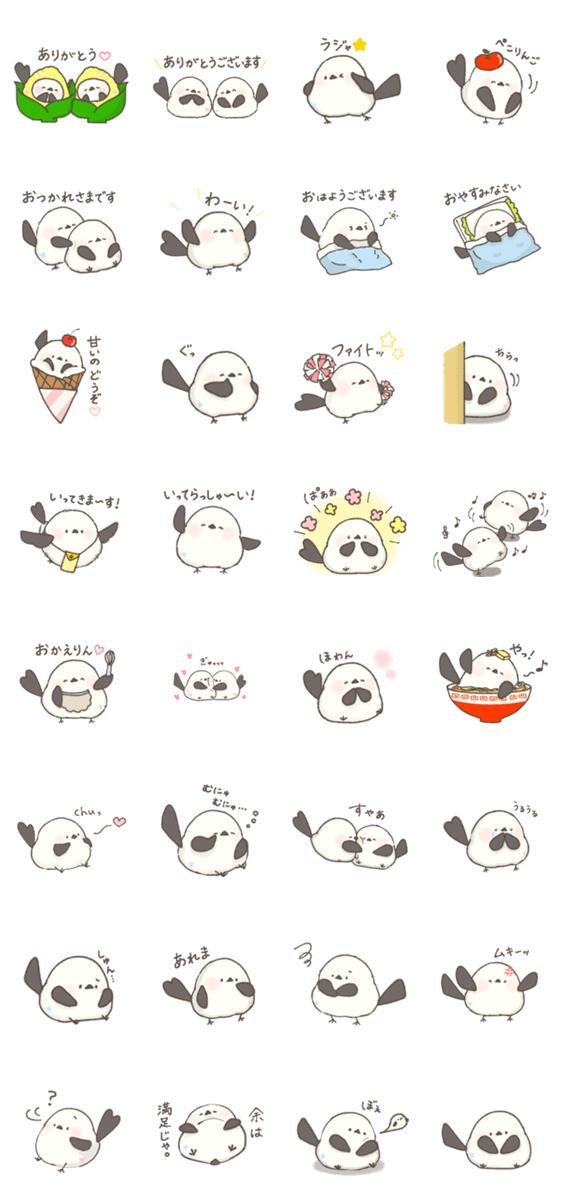 とってもかわいいシマエナガのカップルのスタンプです。 毎日使いやすい言葉がたくさん!