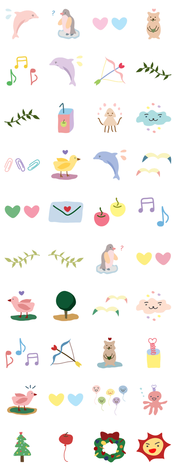 スタンプ説明 ペンギンクアッカワラビー鴨イルカ!
