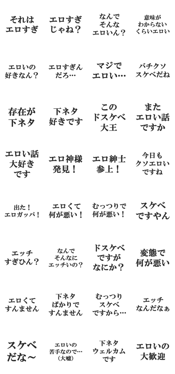 下ネタが好きで不健全な変態、スケベ、エロ男のためのスタンプです。
