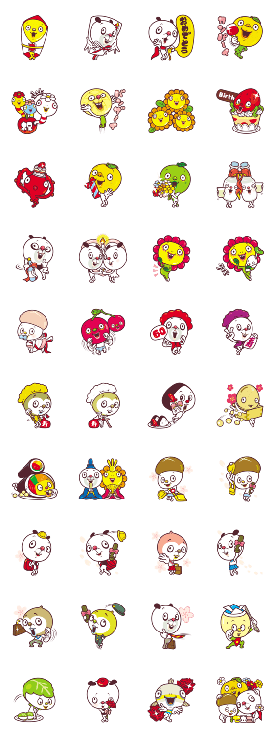 可愛く面白いキャラクター達のお祝いや祝福に使えるスタンプです。