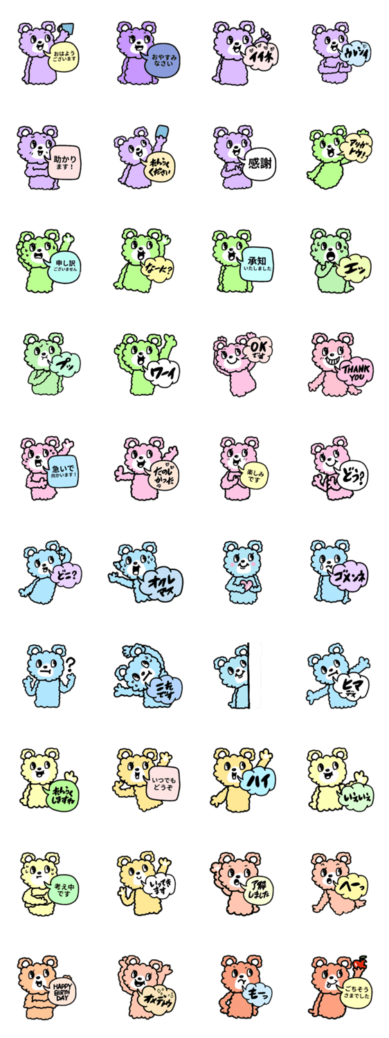 スタンプ説明 カラフルくまの吹き出し簡単返信スタンプ