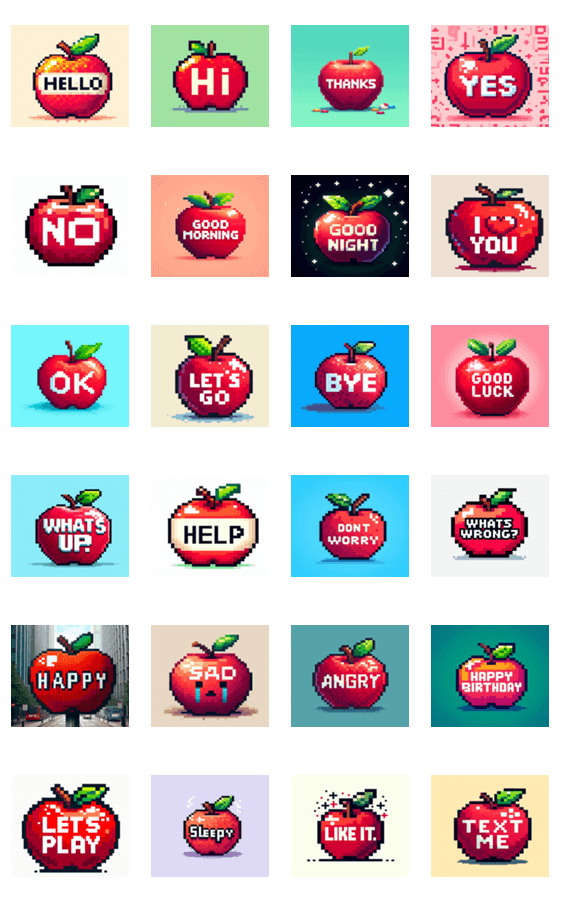 かわいいピクセルりんごでチャットを彩りましょう!様々な感情やリアクションをピクセルアートで表現できます。