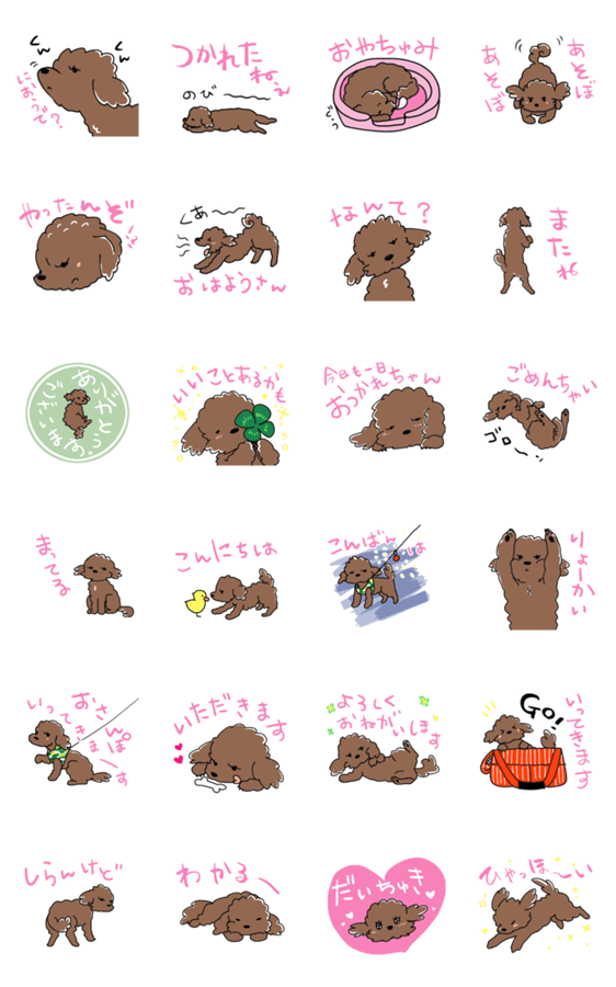 漫画「しっぷうのネネ」スタンプ第一弾です。 体も態度も大き目なトイプードル、ネネちゃんの パピー時代のスタンプ。