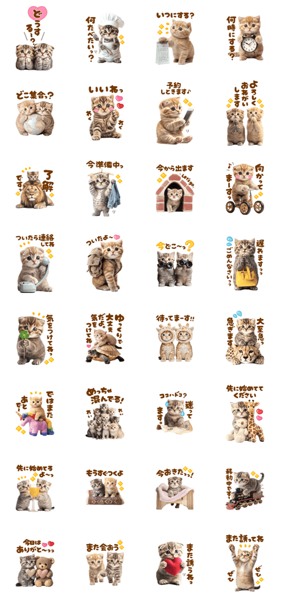 いつにする?待ち合わせに大活躍♪約束〜当日、帰ってからも使える便利なスタンプです。かわいい猫ちゃんがいっぱい♡ ※このスタンプはトークルームで大きく表示されるBIGスタンプです。