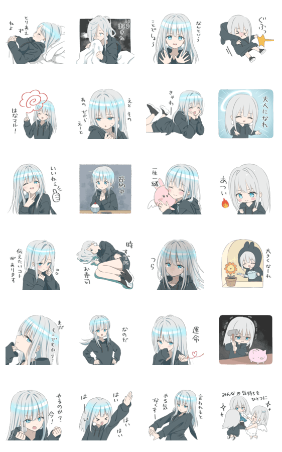 パーカーの女の子(銀髪)13 -LINEスタンプマニア