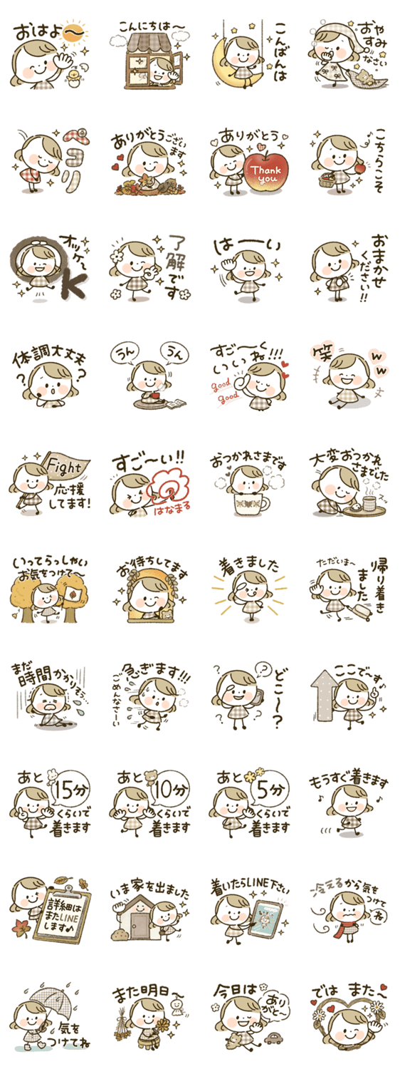 シンプルで使いやすい女の子のスタンプです♪待ち合わせ/秋冬/見やすい/くっきり/敬語/挨拶/くすみカラー/大人可愛い