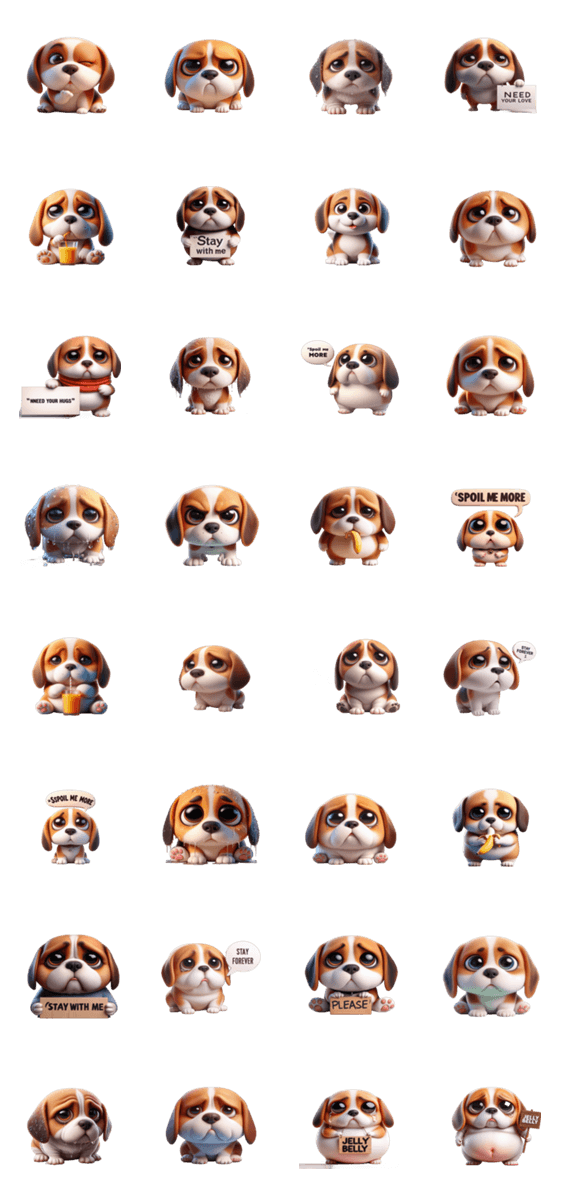 ビーグル絵文字ステッカー、犬、そばにいて、甘える、お願い、コミュニケーション、犬ステッカー、LINEスタンプ、イラスト