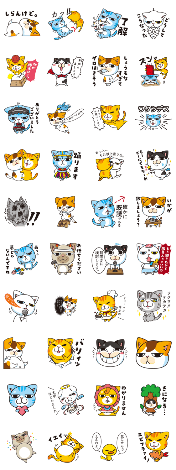ジト目のねこが織りなすふざけたスタンプ。