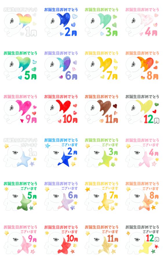 ビション・フリーゼという犬のOKOGE(おこげ)の背景が動くエフェクトスタンプ。敬語バージョンもあるから使いやすい。家族やお友達の誕生日をカラフルなハートや星でお祝い