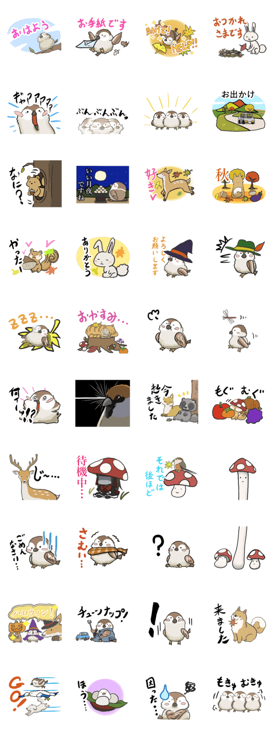 秋の動物とすずめスタンプ -LINEスタンプマニア