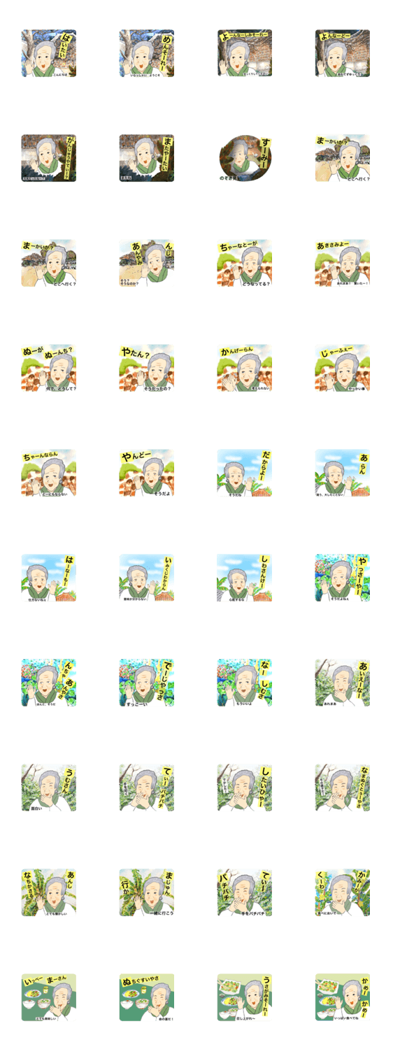 | スタンプ説明 | ツワ者婆ちゃんの沖縄方言 1 のスタンプです。 ※このスタンプはトークルームで大きく表示されるBIGスタンプです。 |