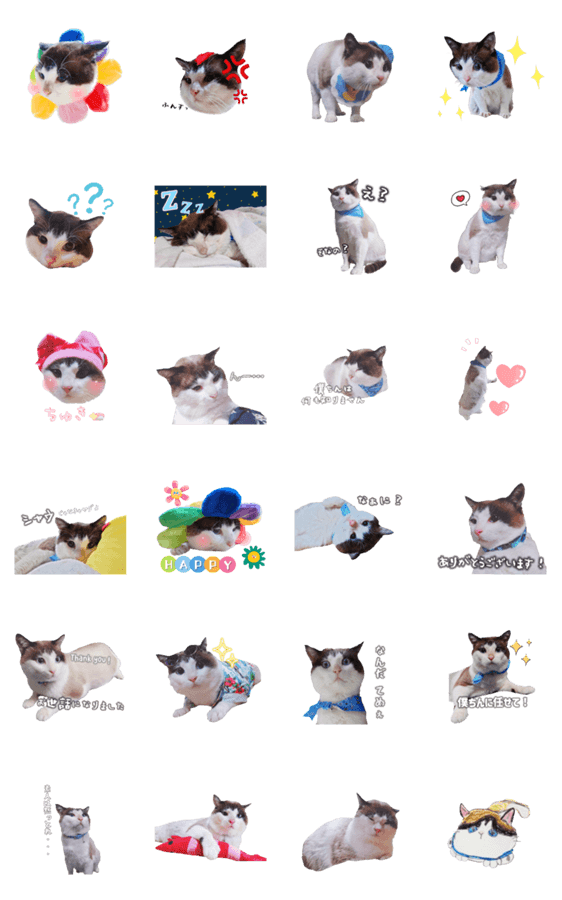 保護猫シャミオの可愛い表情を集めた手作りスタンプです♪♪