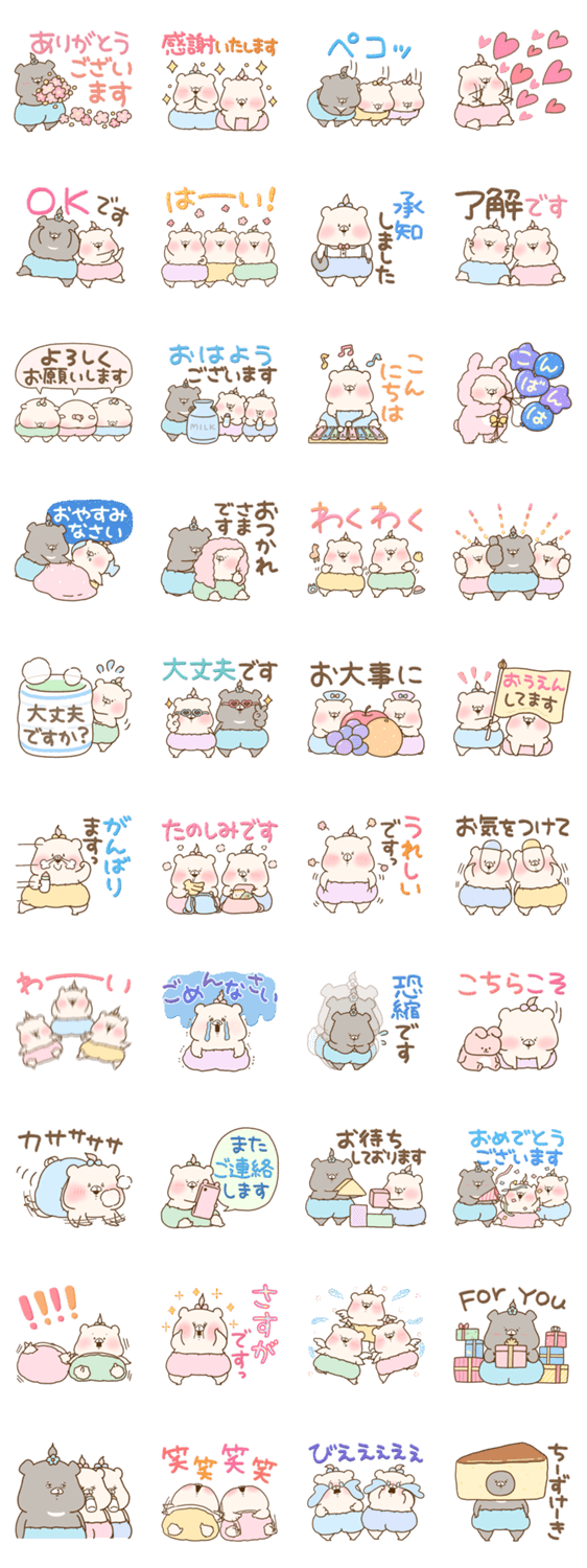 「つきのわぐま」と「ベビくま」の敬語・丁寧語スタンプです。