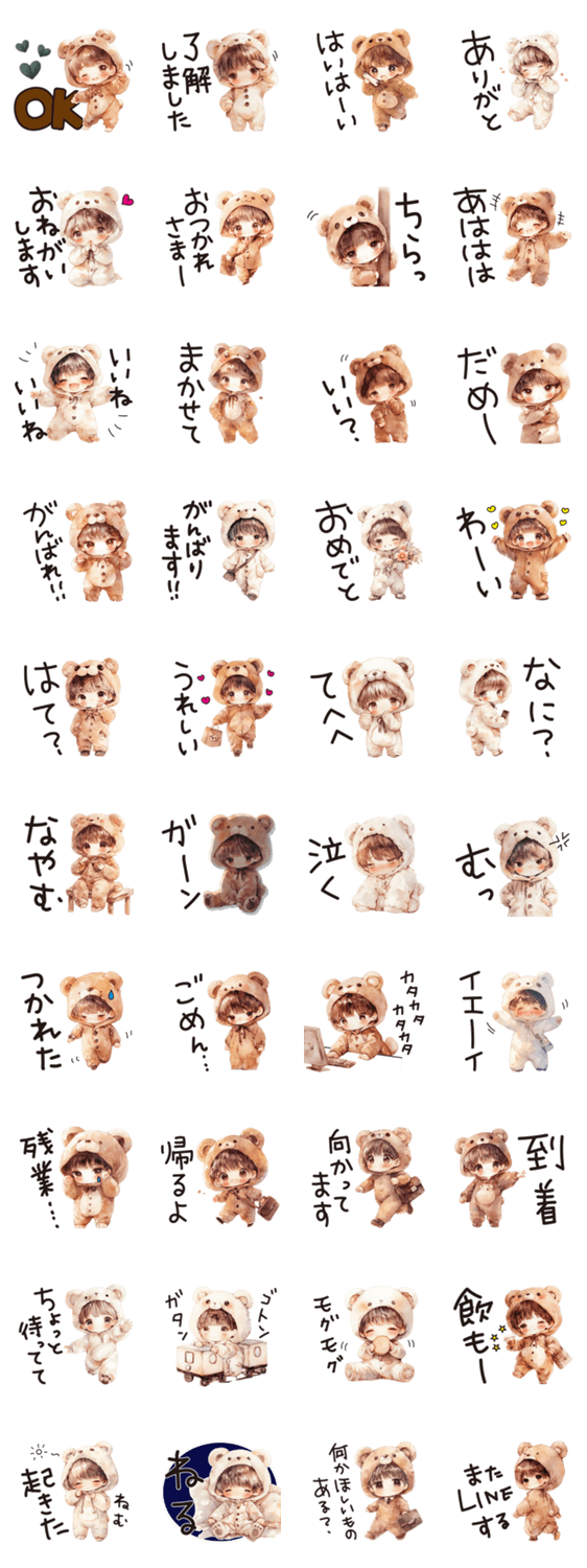 スタンプ説明 着ぐるみくまちゃん毎日お仕事がんばるよ。