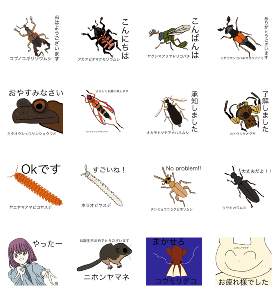 日本に生息している、素敵な生き物たちをスタンプにしました。