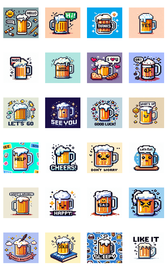 この楽しいピクセルビールのスタンプで、陽気で泡立つ瞬間を楽しんでください!お祝いにも、友達とのリラックスタイムにもぴったりです。