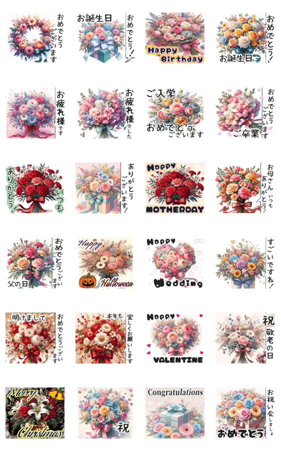 ❤️お祝いの花束❤️たくさんのお祝い言葉 -LINEスタンプマニア