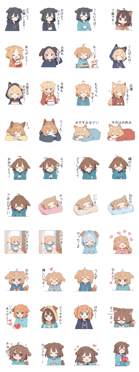 日常 セリフ 付き スタンプ 女の子 キャラ パーカー ミニ