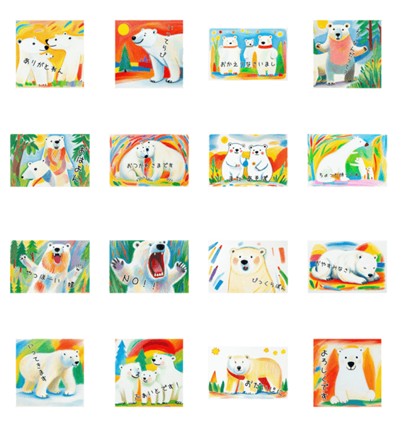 優しい色鉛筆で描かれたしろくまのスタンプです。