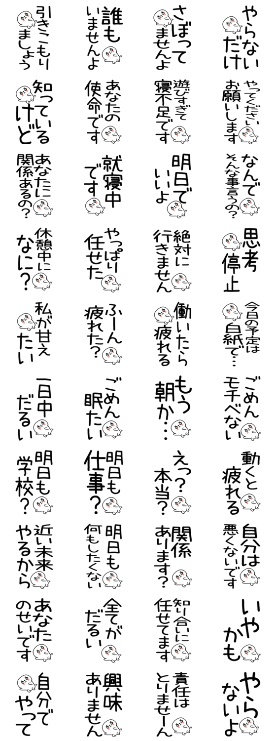 老眼でも見える引きこもり言葉スタンプ もるきゅた作 ※このスタンプはトークルームで大きく表示されるBIGスタンプです。