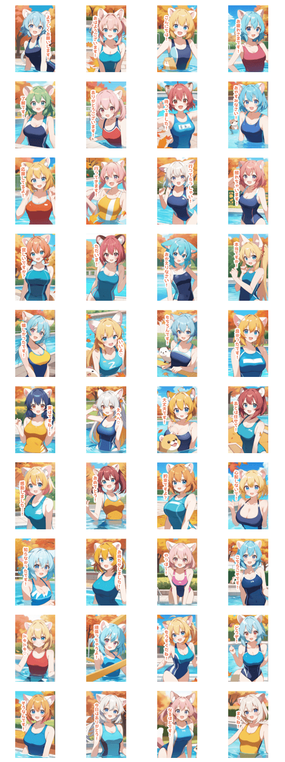 秋プールの水着フェレット女子BIGスタンプ -LINEスタンプマニア