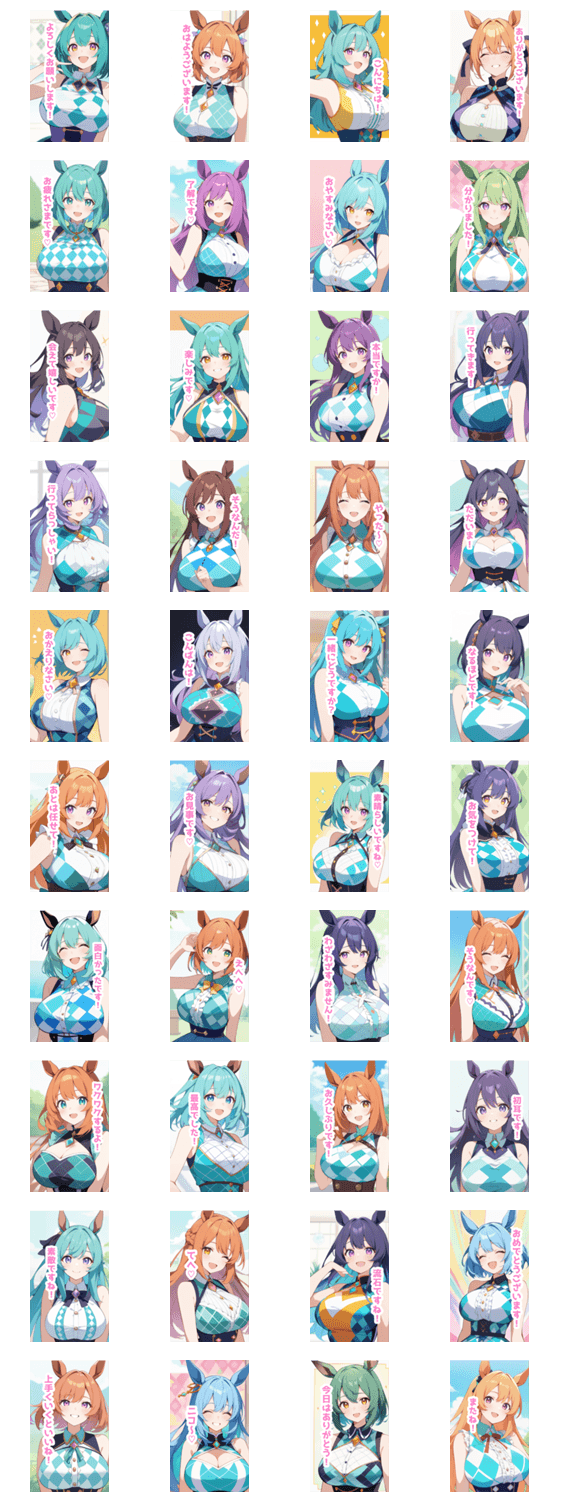アーガイル衣装の馬の女の子BIGスタンプ -LINEスタンプマニア