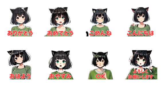かわいいねこ耳の女の子が登場するアニメ風のスタンプで、日常会話をもっと楽しく!