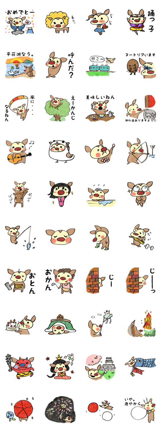 播州弁スタンプ。またまたまたバンビが大活躍。パステル調の手描きテイストで日本の四季を紹介しつつ、加古川寄りのディープなスタンプをお届けします。