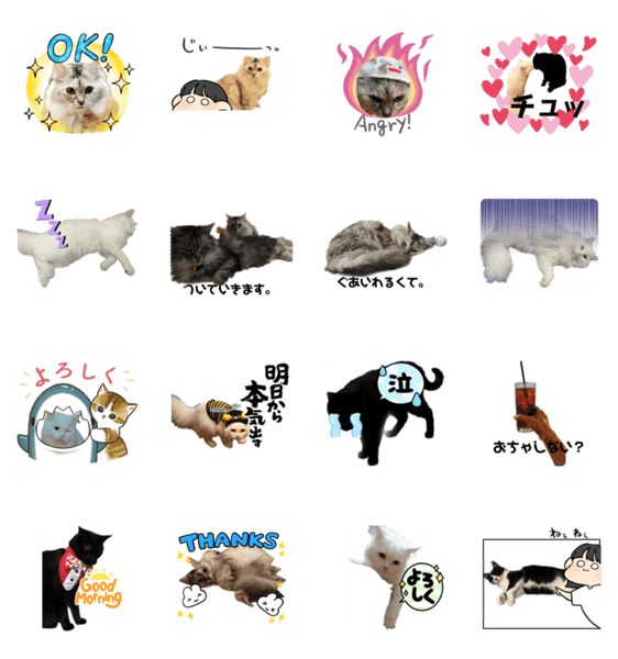 LINEスタンプメーカーでつくったスタンプです。我が家の4匹の猫でスタンプを作りました。