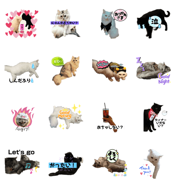 LINEスタンプメーカーでつくったスタンプです。我が家の4匹の猫で作ったスタンプです。
