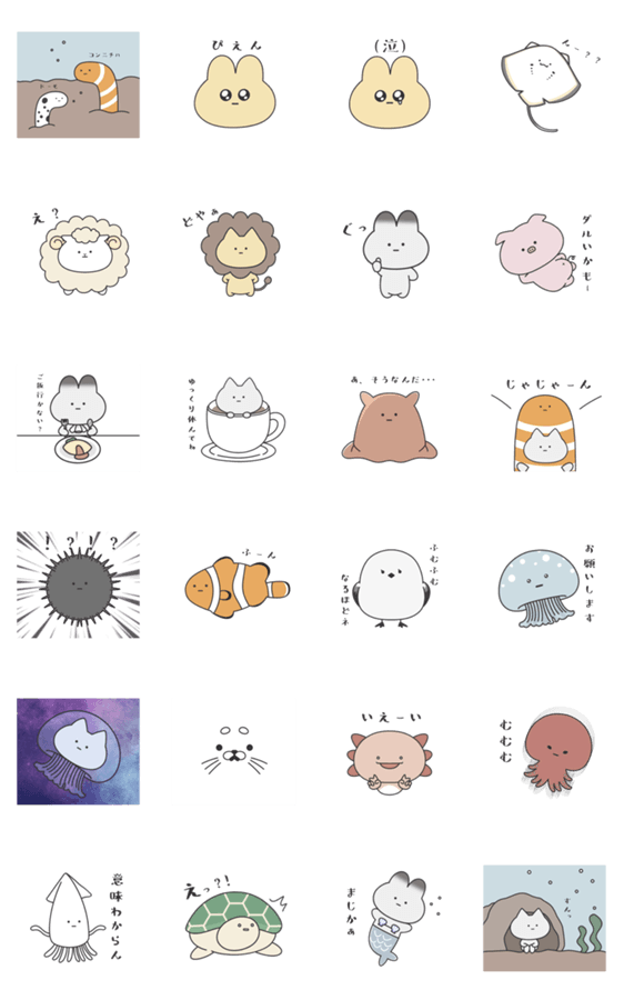 真顔だけどゆる可愛いスタンプ第二弾。海の生き物多めです。