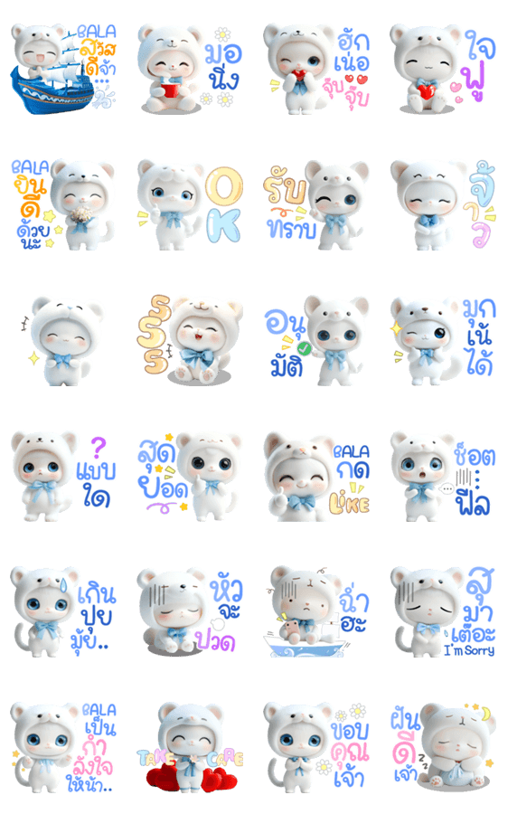 | スタンプ説明 | Bala..Little Bear (Cat in a Bear Costume) from Lanna, the land of Kasalong, is ready to add color to everyone's chats. |