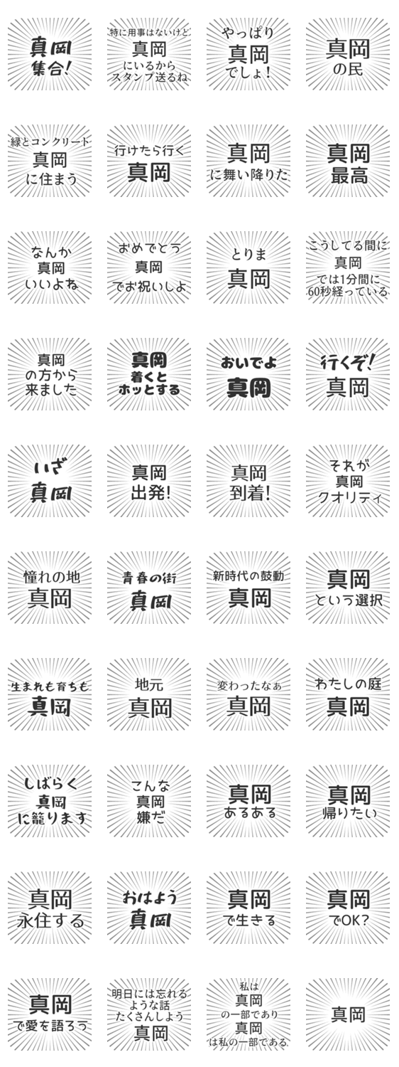 地元のための漫画風セリフスタンプ。集中線で叫べ。地元の人にも憧れてる人にも。面白いのが見つかると嬉しい。集中線。地元愛。