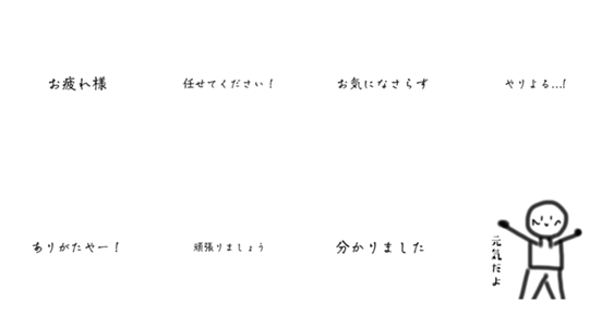こんにちは!今回のスタンプは、「文字だけスタンプ」です!今回で2個目なので、使って見てください!