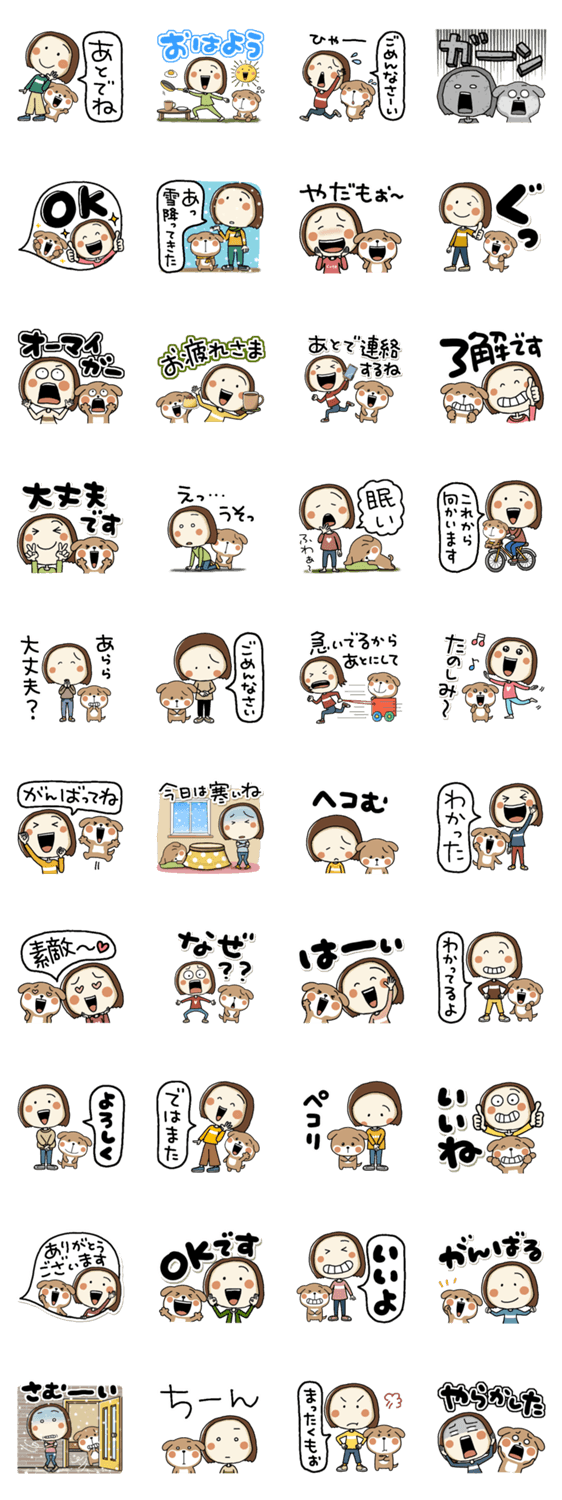 表情豊かで可愛いらんちゃんと犬のマロンの便利な挨拶。