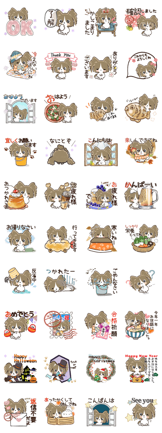 愛犬♡パピヨンdeご挨拶【秋から冬】 -LINEスタンプマニア