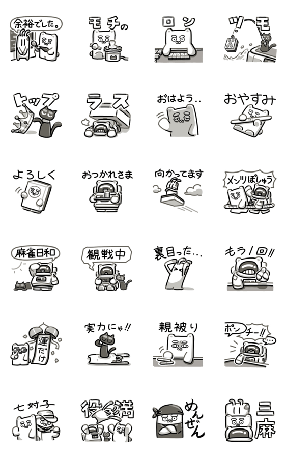 クマ宗家キャラクターたちの「麻雀好き」のためのスタンプです。