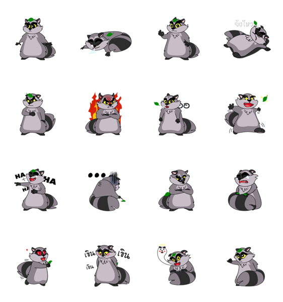 | スタンプ説明 | Rac'ka the super cute and cuddly raccoon and his leafy friend. |