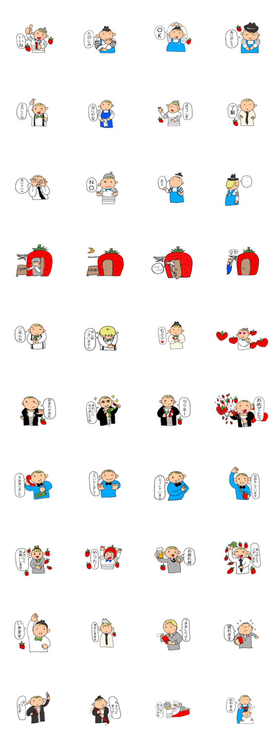 | スタンプ説明 | 美容室で使える 予約に便利 いちご好きにはたまらない、美容師さんのステッカーです。 |