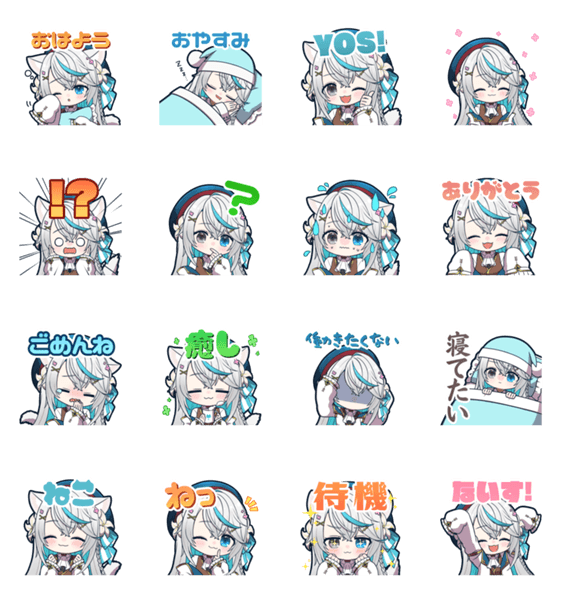 Vtuber猫百合イッサのスタンプです!おはようからおやすみまで使えます。
