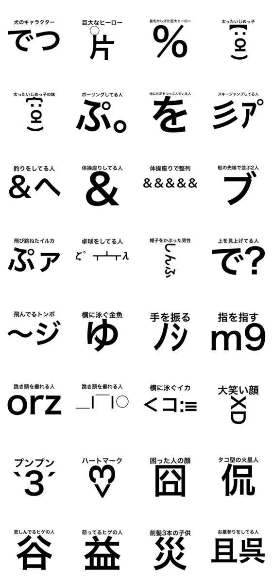 まるで〇〇に見える文字を集めてスタンプにしました。日常会話でここぞという時にお使いください。