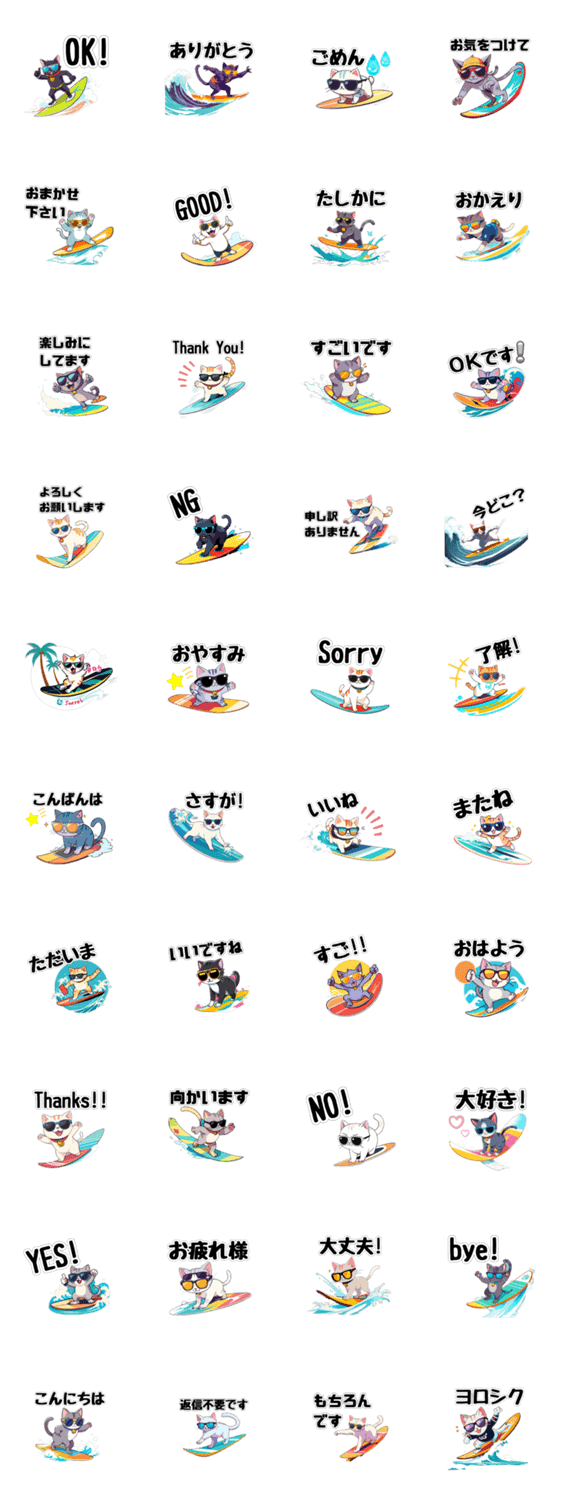 サーフィン・キャット・チャットスタンプ -LINEスタンプマニア