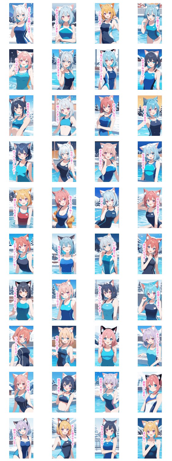 冬プールの水着の猫の女の子BIGスタンプ -LINEスタンプマニア