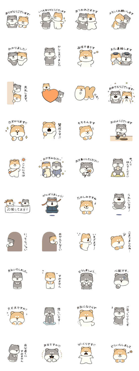 同僚や友達、家族とも毎日使える敬語のスタンプです。しばいぬ/赤柴/黒柴