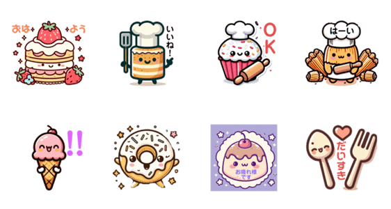 かわいいスイーツたちがあなたのトークを彩ります!バラエティ豊かなデザインが盛りだくさん。日常の会話をもっと楽しくするスタンプセットです。