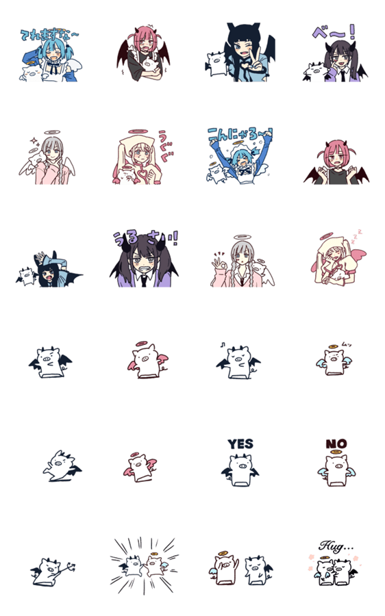 coalowlのオリジナルキャラクター、天使ちゃんたち、悪魔ちゃんたち、そしてぶたさんがうごくスタンプになって登場!!!!!! 使いやすすぎる!!!!