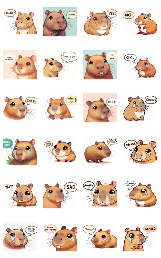うるうるしたカピバラが感情を表現するかわいいスタンプです。日常の会話にぴったりです。